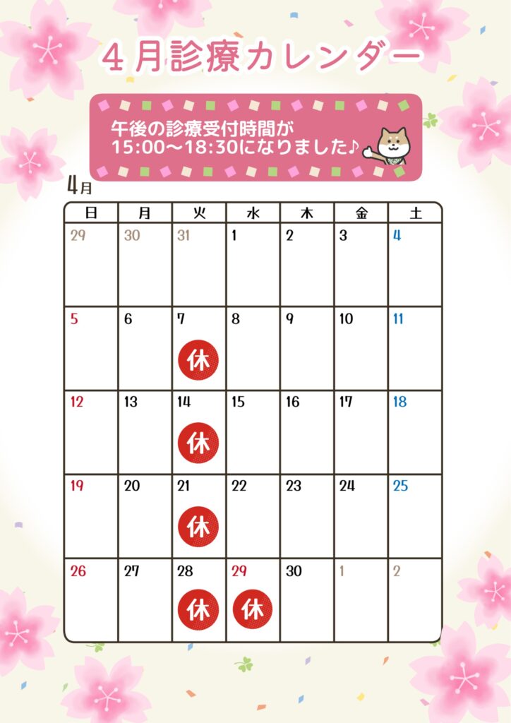 また、フィラリア予防やノミ・ダニ対策などのシーズンも到来しております。駆虫薬キャンペーン、予防に関するご相談も随時承っておりますので、お気軽にお声がけください♪